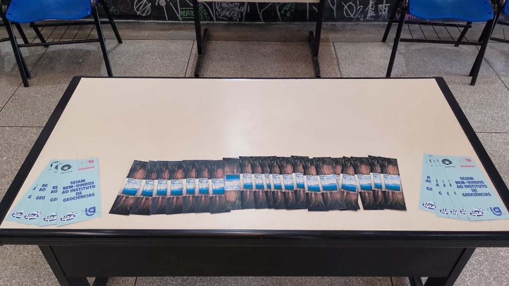 As estudantes Andreia Mendonça Zambanini da Silva, Beatriz Carolinne de Souza, Jóyce Oliveira Leitão, Sandra Freitas Santos, e os estudantes Paulo Roberto da Silva Rufino e Walter Luiz Junior participaram durante toda a manhã e tarde do espaço destinado ao LEHG para apresentar às pessoas que visitaram o Instituto de Geociências a importância e dimensão da ciência geográfica.